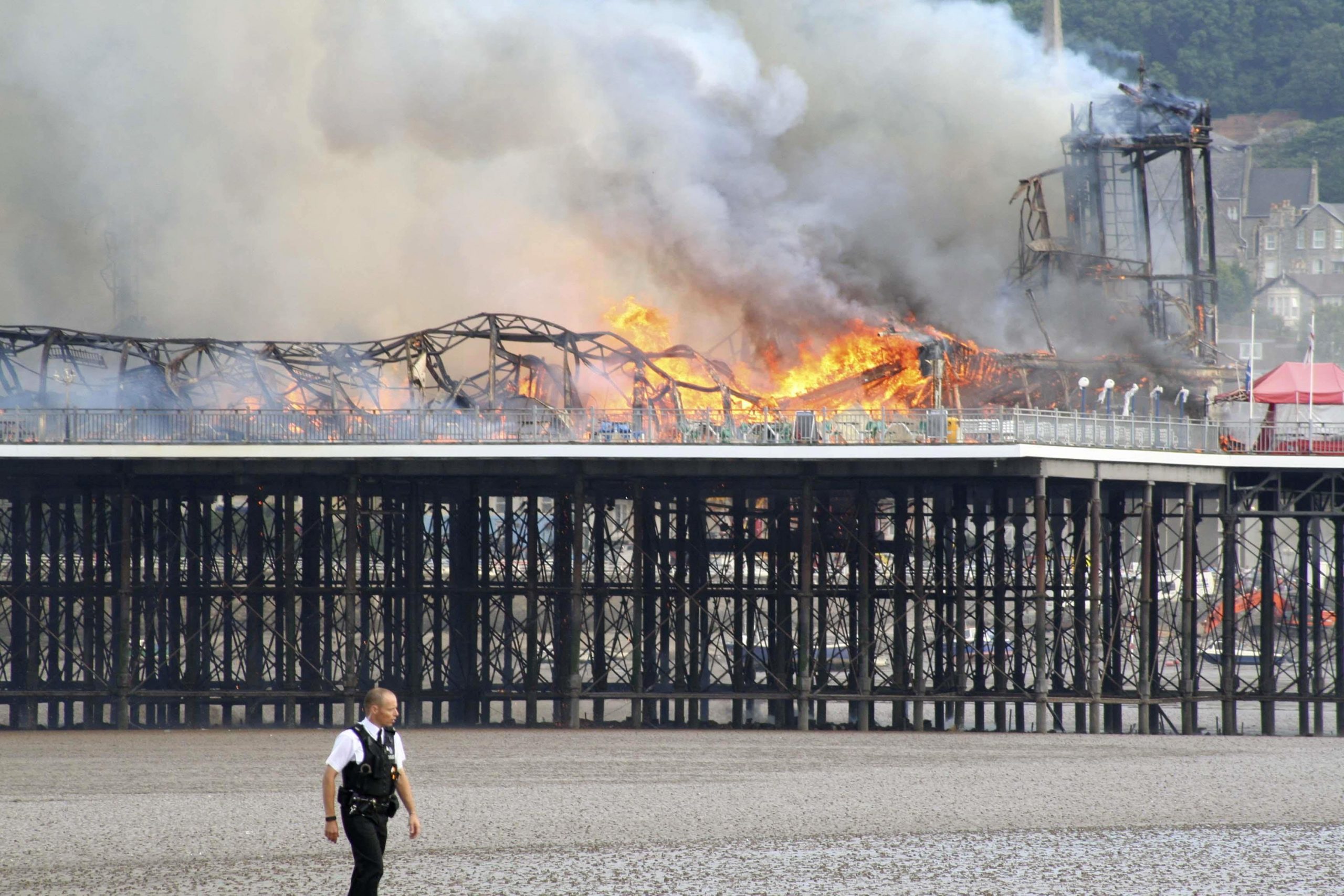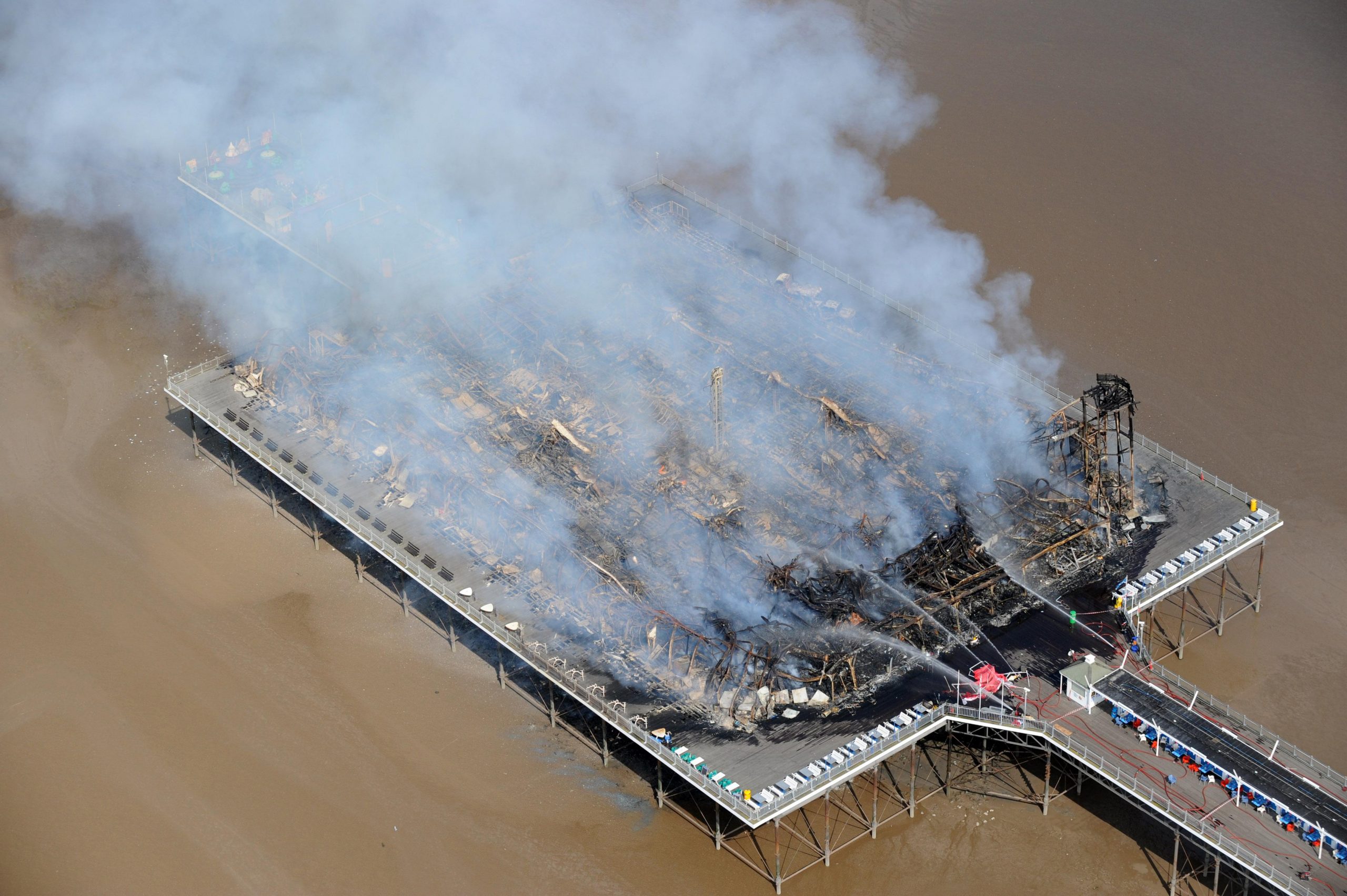 There was no reports of any casualties. The fire service had difficulty getting enough water to the fire to dampen the flames as the pier is a quarter of a mile out to sea and the tide was out at the time the pier caught fire. A water barrier between the structure and the esplanade was later established to prevent the fire spreading. The fire eventually burnt itself out.