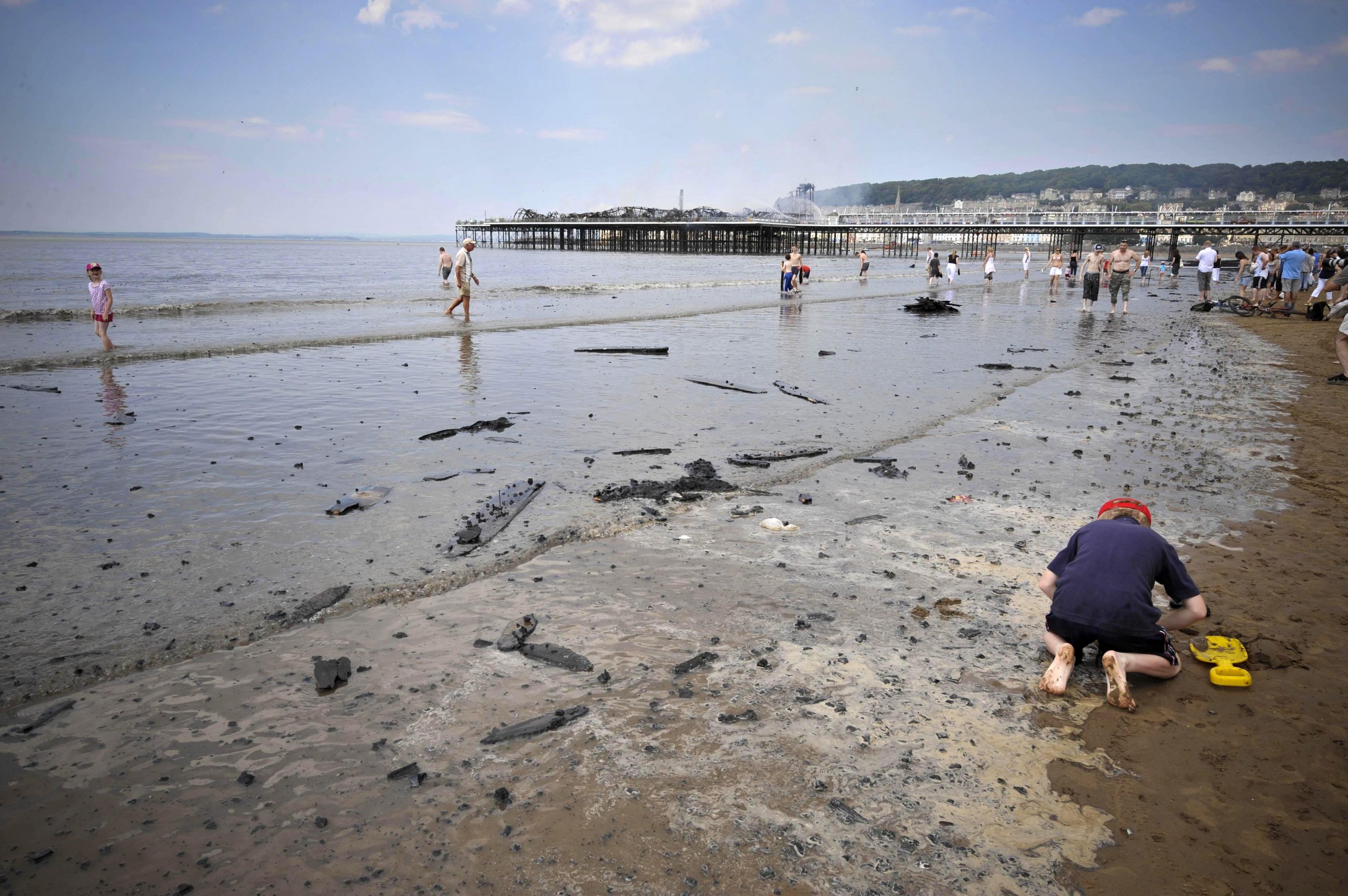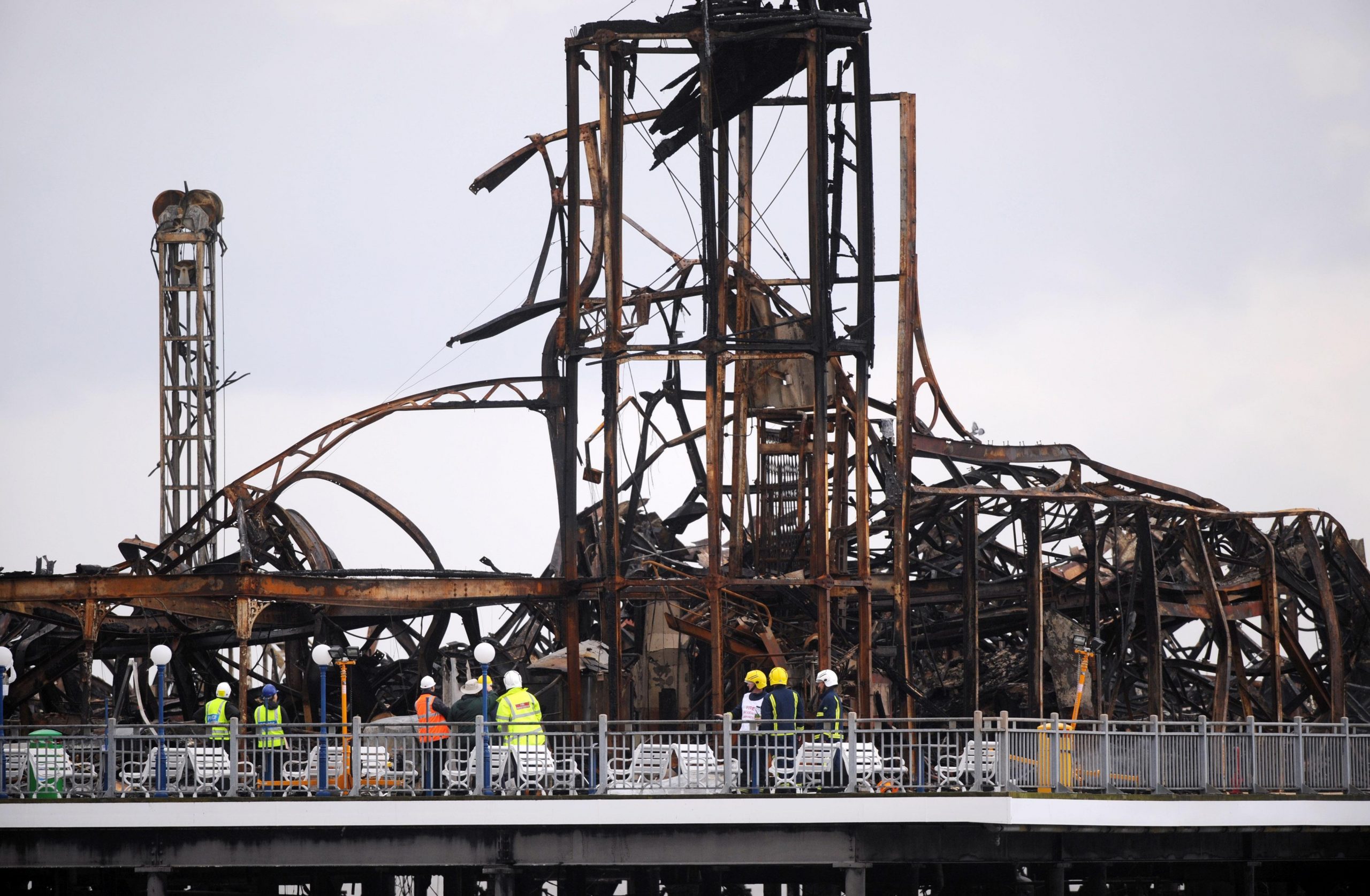 Within two hours the Grand Pier had been reduced to rubble. Despite warnings from the police, hundreds gathered along the seafront and on the beach to get a view of the structure, so synonymous with the summer, lying in ruins on the first day of the summer holidays. Fire officers were first notified of a blaze at 0645 BST on 28 July 2008 and was first reported on the national BBC News at about 0745 BST. Initially there was some confusion as to exactly which part of the pier had caught fire.