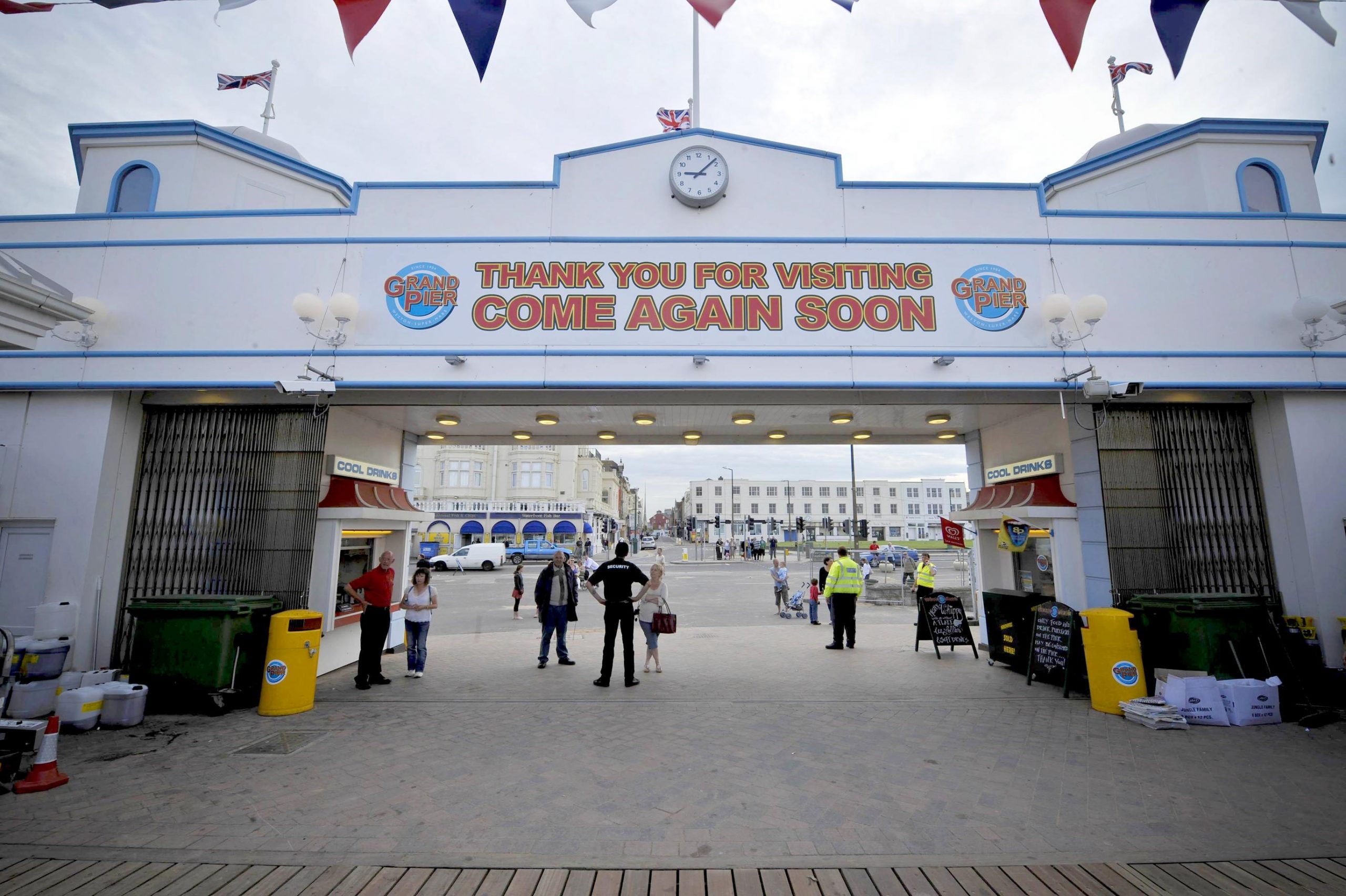 Although one of the last piers to be built, just after the death of Queen Victoria, the Grand Pier has been described as a large elaborate structure carrying a Theatre and Pavilion plus kiosks and shops. The pier is over 1,000 feet long and is well placed in the centre of the town, close to the railway station and the main road system.